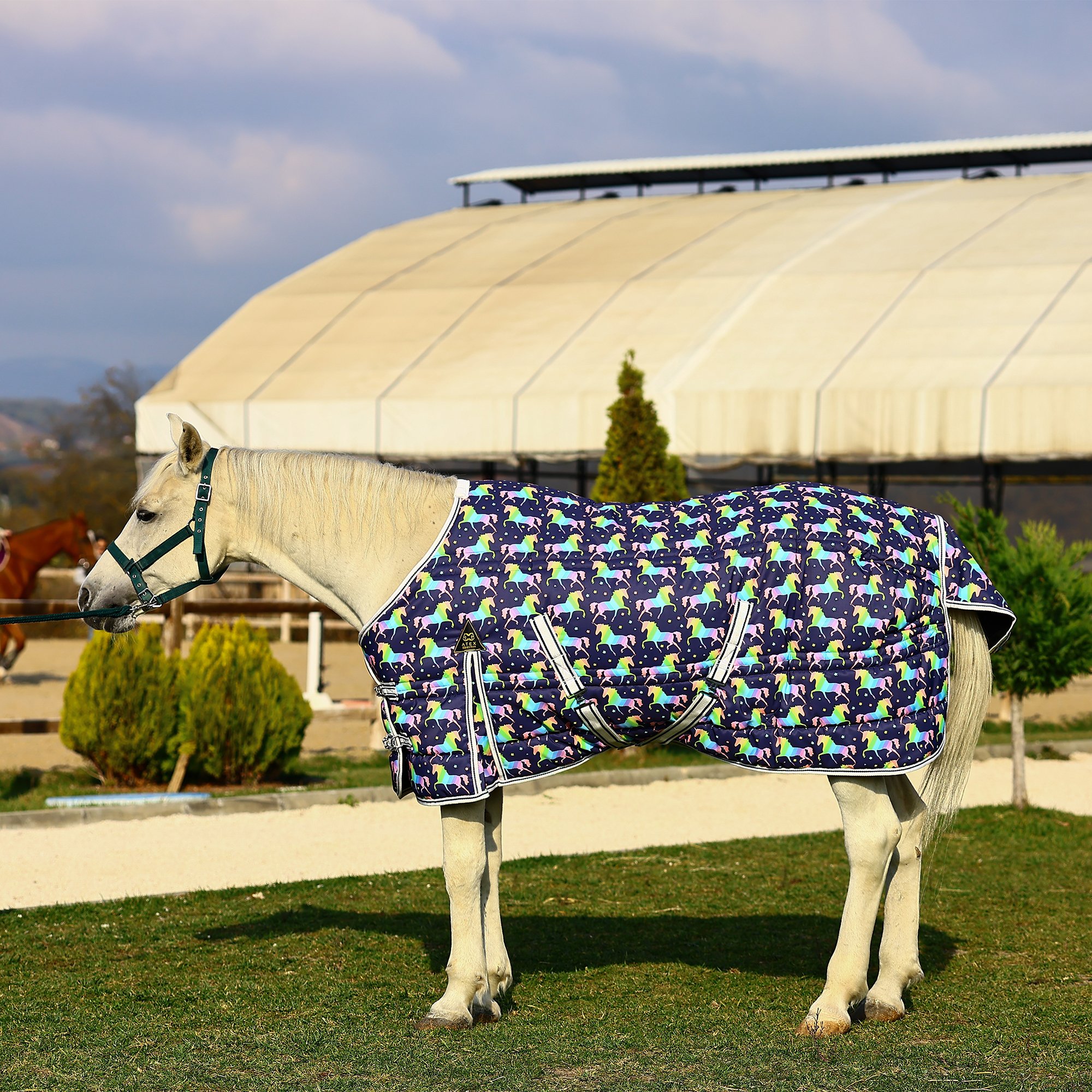 - Kolonlar üzerindeki Atex Binicilik Tesisleri’ne ait özel dayanıklı dayanıklı polyester iplik ile dikilmiş zarf dikişleri sayesinde dayanıklılık sağlar
